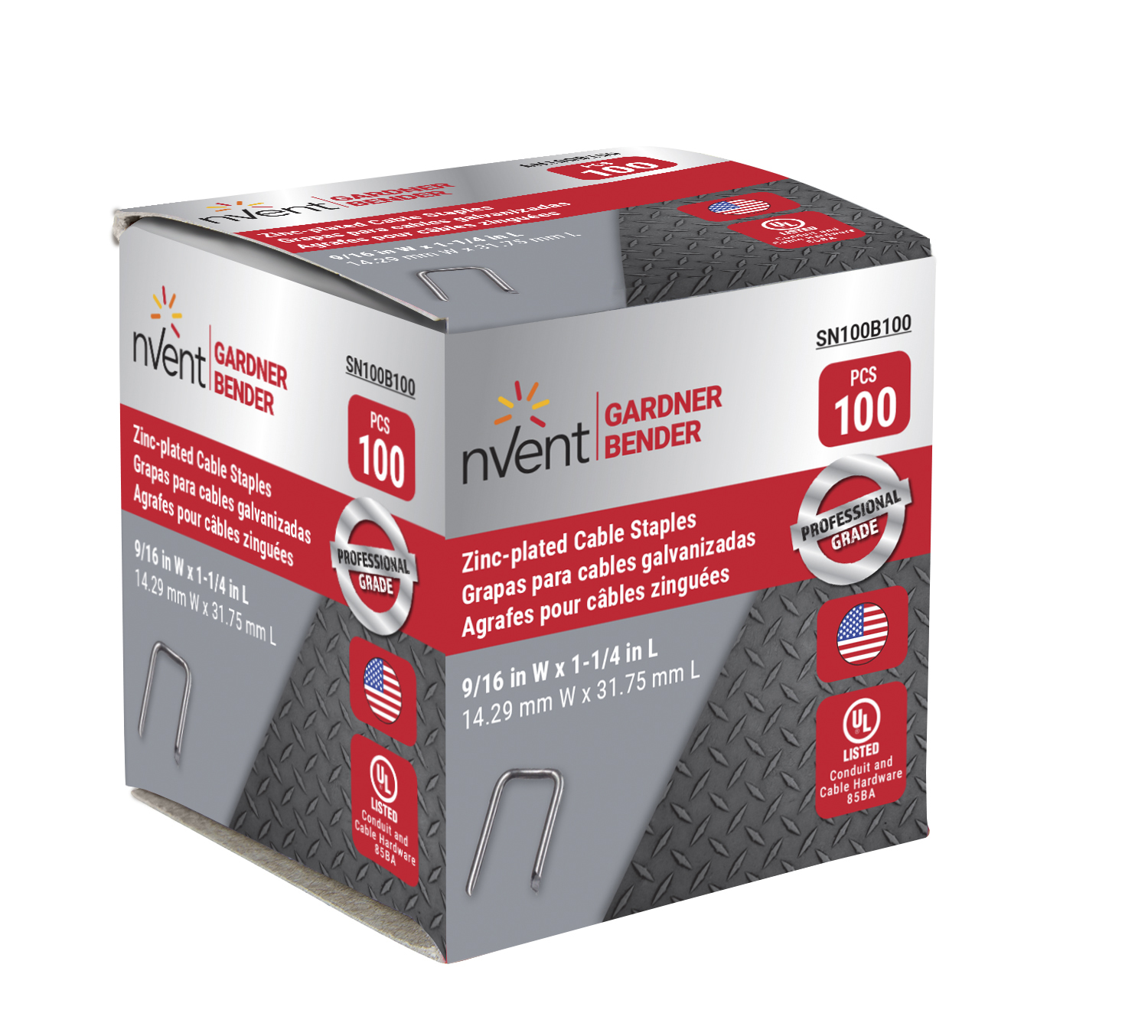 9/16" Wide, 1-1/4" Long, Zinc Plated Low Carbon Steel Staples, 100/Box
